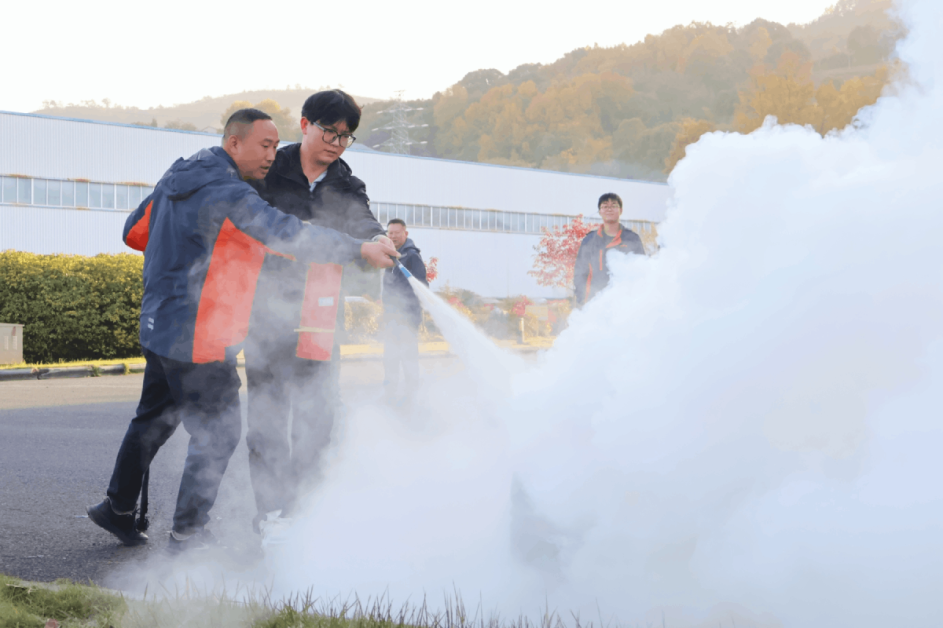 随后的灭火演练中,工作人员现场示范初起火灾灭火器扑救技巧及紧急疏散逃生注意事项,员工们分组实操演练,在紧张有序的氛围中熟练掌握关键技能。整个活动紧扣实战、节奏紧凑,既强化了理论认知,又提升了实操能力与应急反应水平。